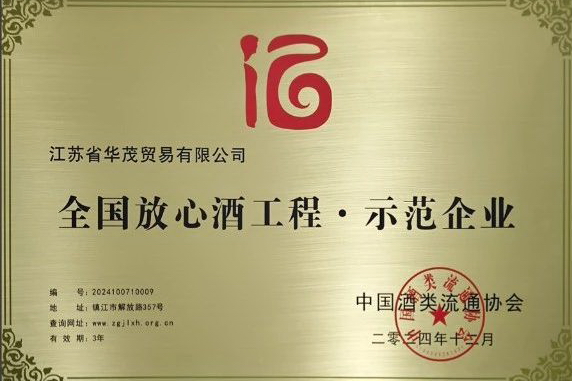 江蘇華茂再獲“全國放心酒工程·示范企業”榮譽